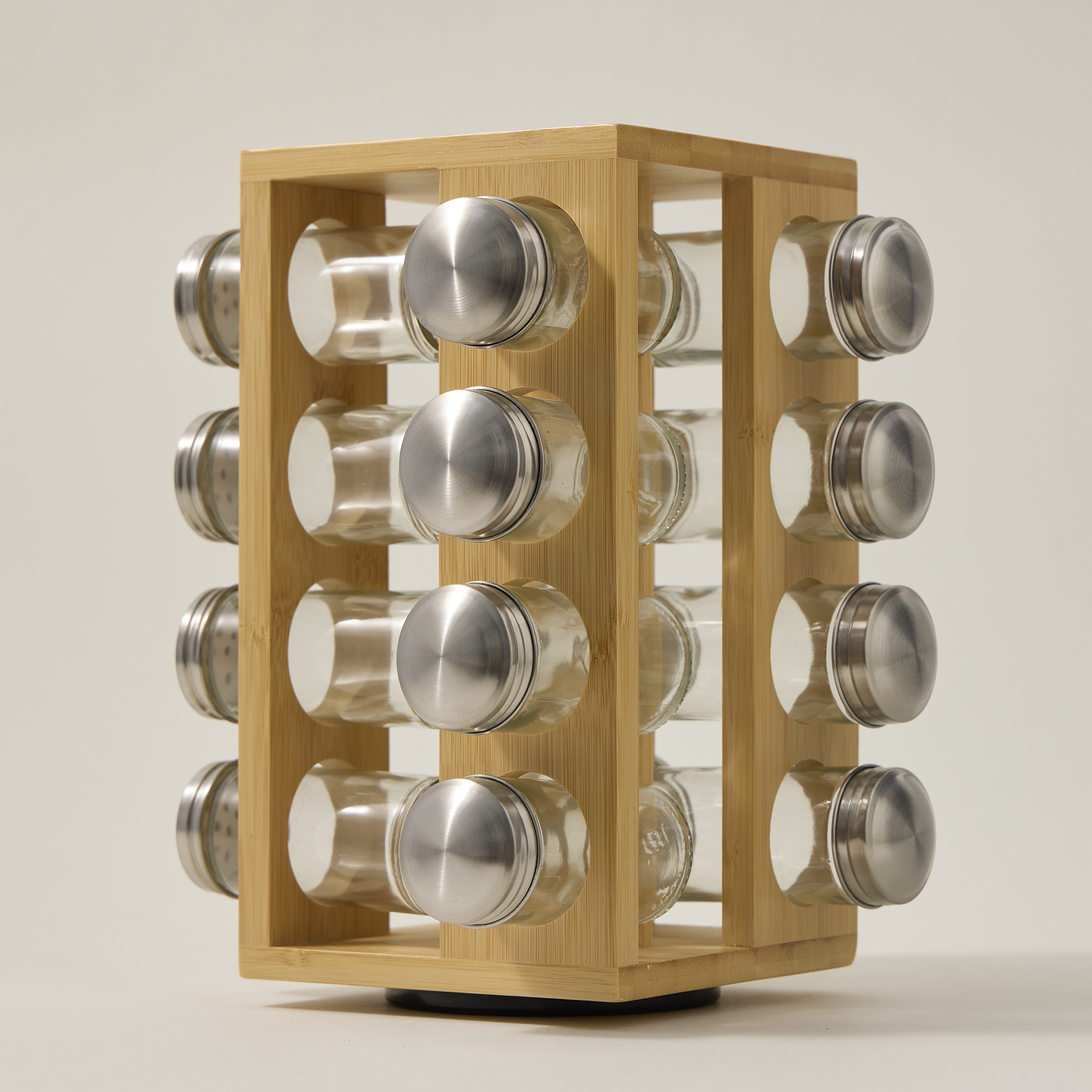 طقم برطمانات توابل 16 قطعة بحامل بامبو