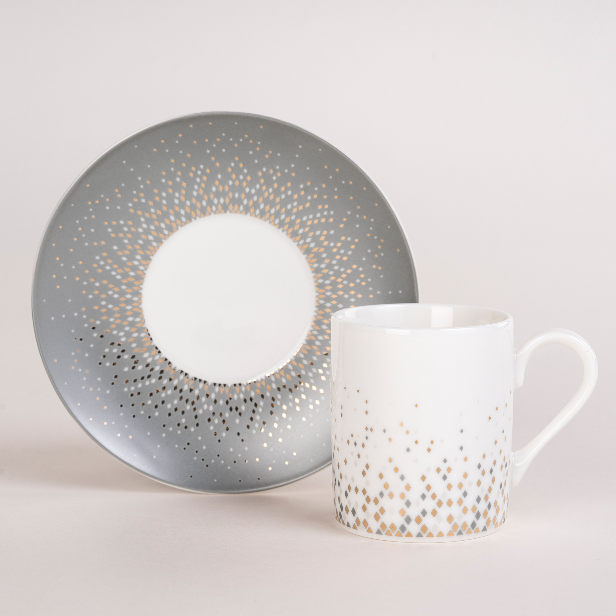 دلتي طقم فناجين قهوة تركي بورسلان رمادي وأبيض 12 قطعة