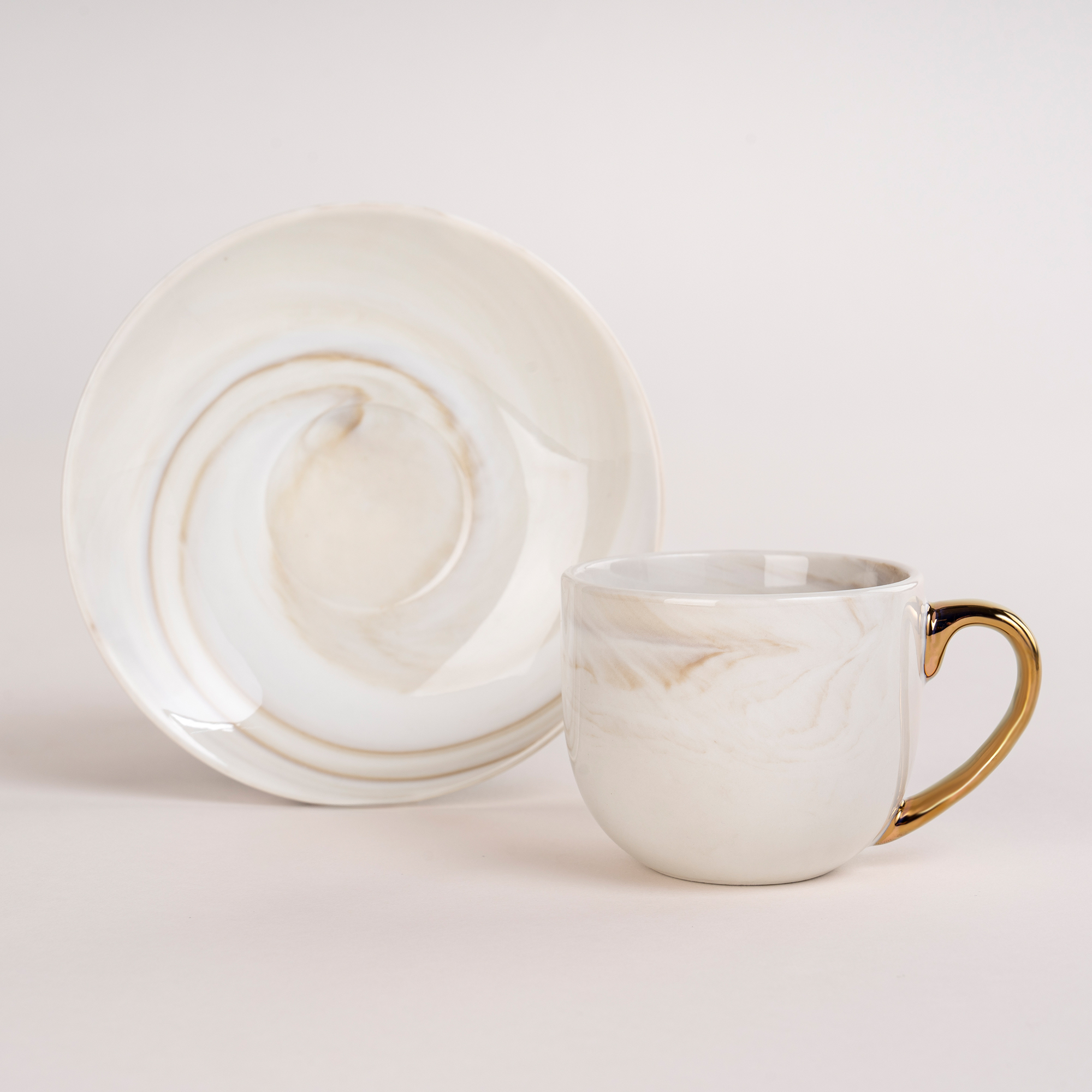طقم أكواب قهوة رخام بمسكة ذهبية 12 قطعة من لاميسا