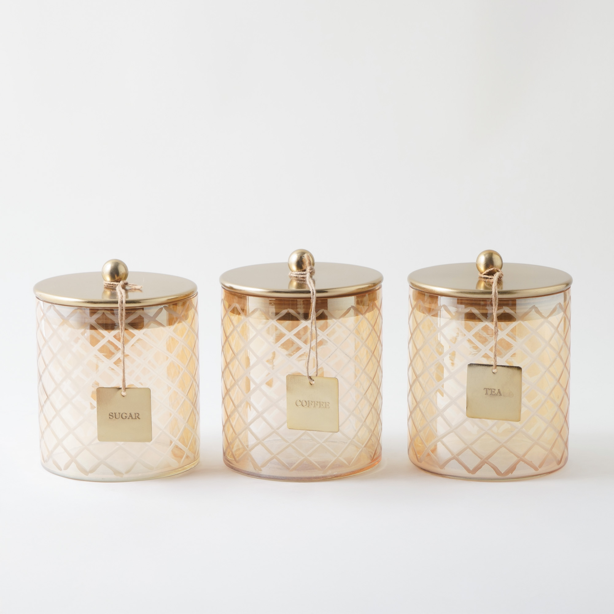 ألبرتو طقم برطمانات عصري مصنوع من الزجاج عالي الجودة مزين بنقشة المربعات المتداخلة مع أغطية من الستانلس ستيل باللون الفضي المطفي. يحتوي الطقم على ثلاث برطمانات بمقاسات 12*12*14سم، مثالية لحفظ القهوة، الشاي، السكر، البهارات أو المواد الجافة الأخرى. عملي، متين، ويضفي لمسة أنيقة لتنظيم مطبخك.