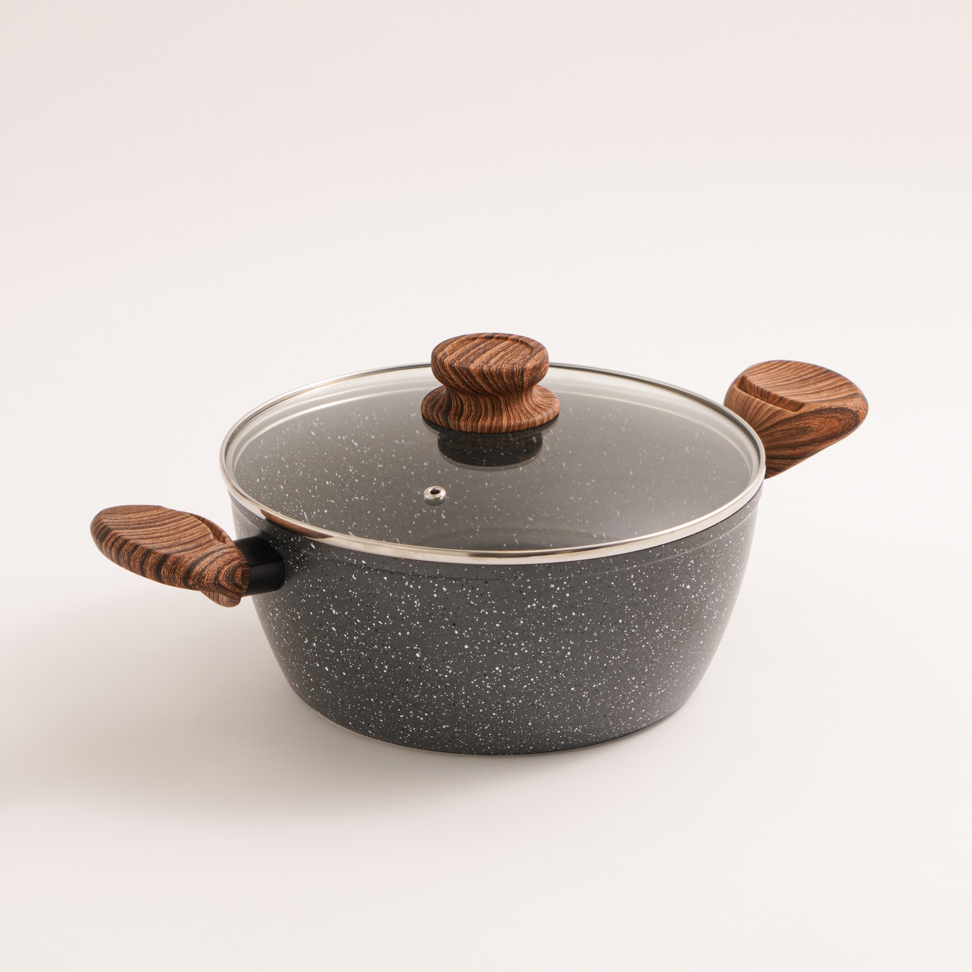 البرتو قدر جرانيت مع غطاء زجاج 24 سم