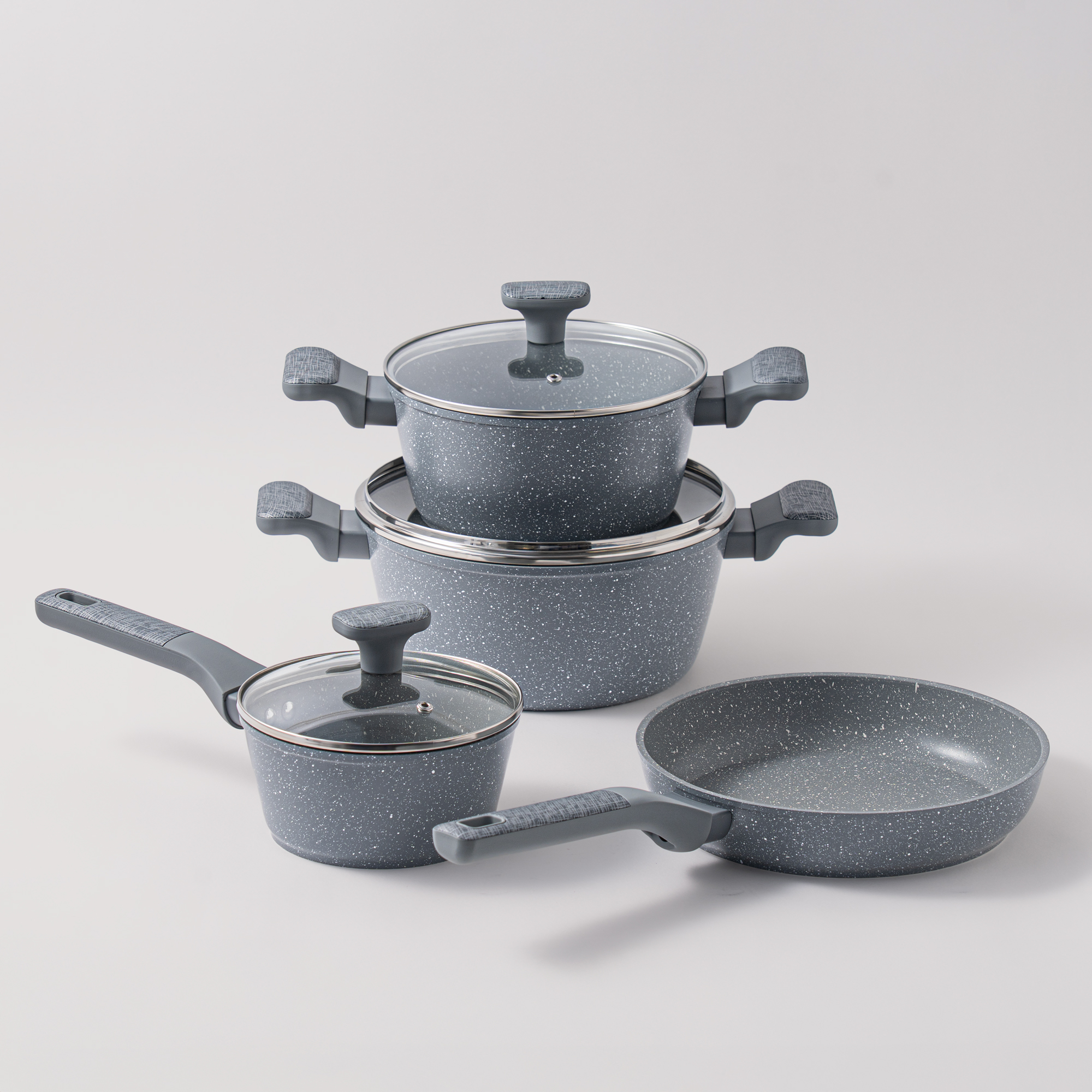 ألبرتو طقم قدور 7 قطع ألومنيوم، رمادي