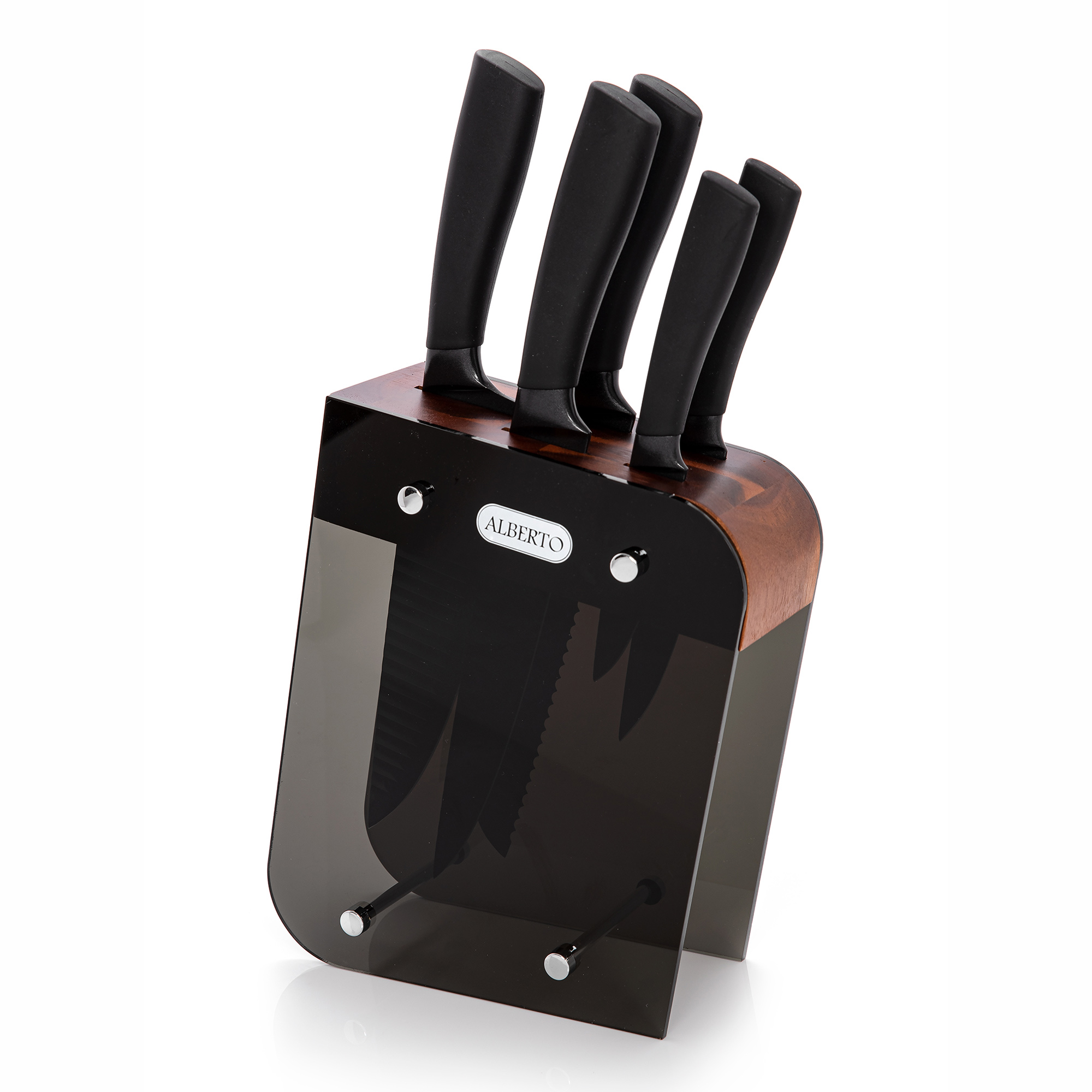 طقم سكاكين ستالس ستيل 5 قطع مع حامل اكريلك من البرتو