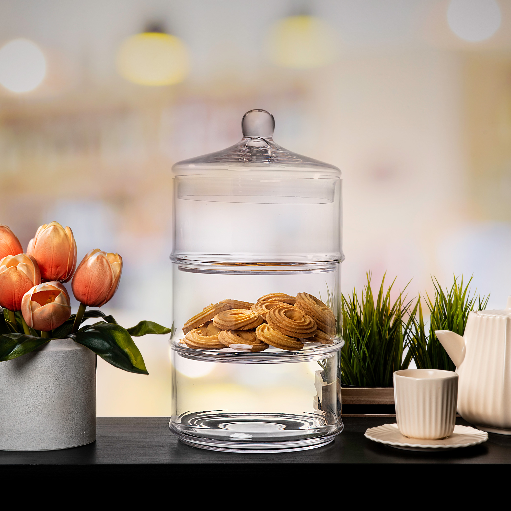 مرطبان تخزين زجاج ألبرتو 3 طبقات قطر: 18 * ارتفاع: 33 سم