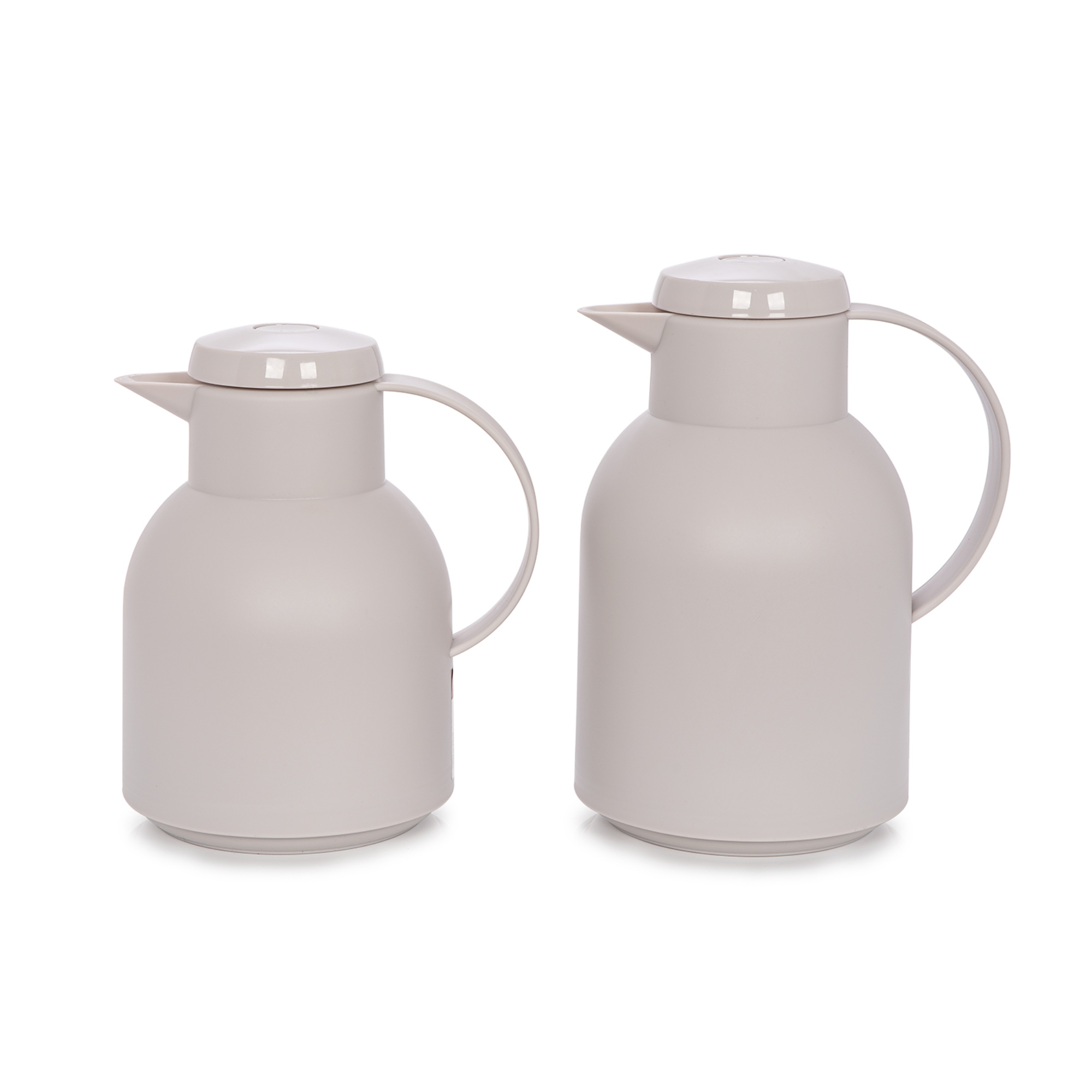 يعتبر طقم الدلّات الرمادية من دلّتي مثالي للاستخدام في المنزل أو حتى عند التنقل دون القلق من تسرب القهوة أو برودتها. مصنوع من بلاستيك عالي الجودة مع غطاء محكم وزر ضغّاط. يتكوّن الطقم من دلّتين بسعة 1ل و1.5ل.