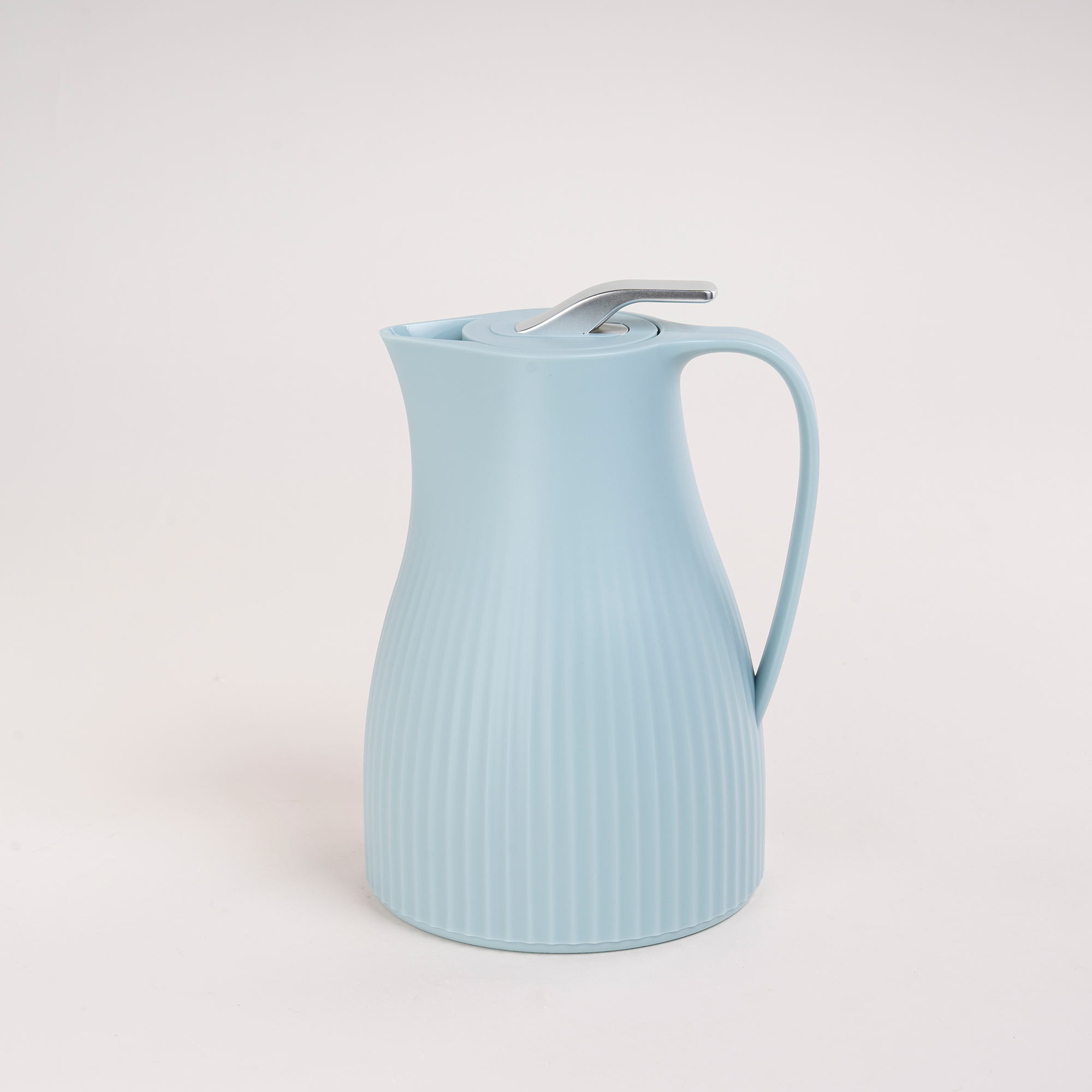 تتميز هذه الدلة بسعة 1ل من دلّتي بتصميم عصري فريد. صنعت من بلاستيك عالي الجودة باللون الأزرق ومزيّنة بنقوش طولية، مزوّدة بغطاء محكم الإغلاق مع زر ضغّاط فضي للحفاظ على سخونة القهوة.