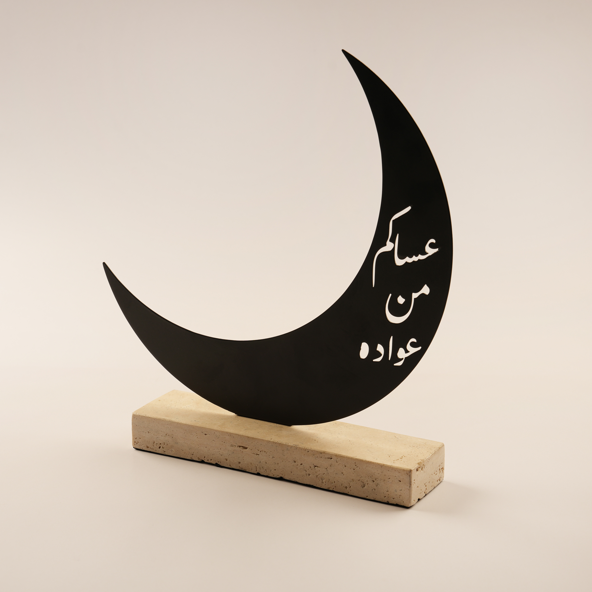 هومز ديكور رمضاني معدني بتصميم هلال مع قاعدة حجرية، أسود 32*6*30سم