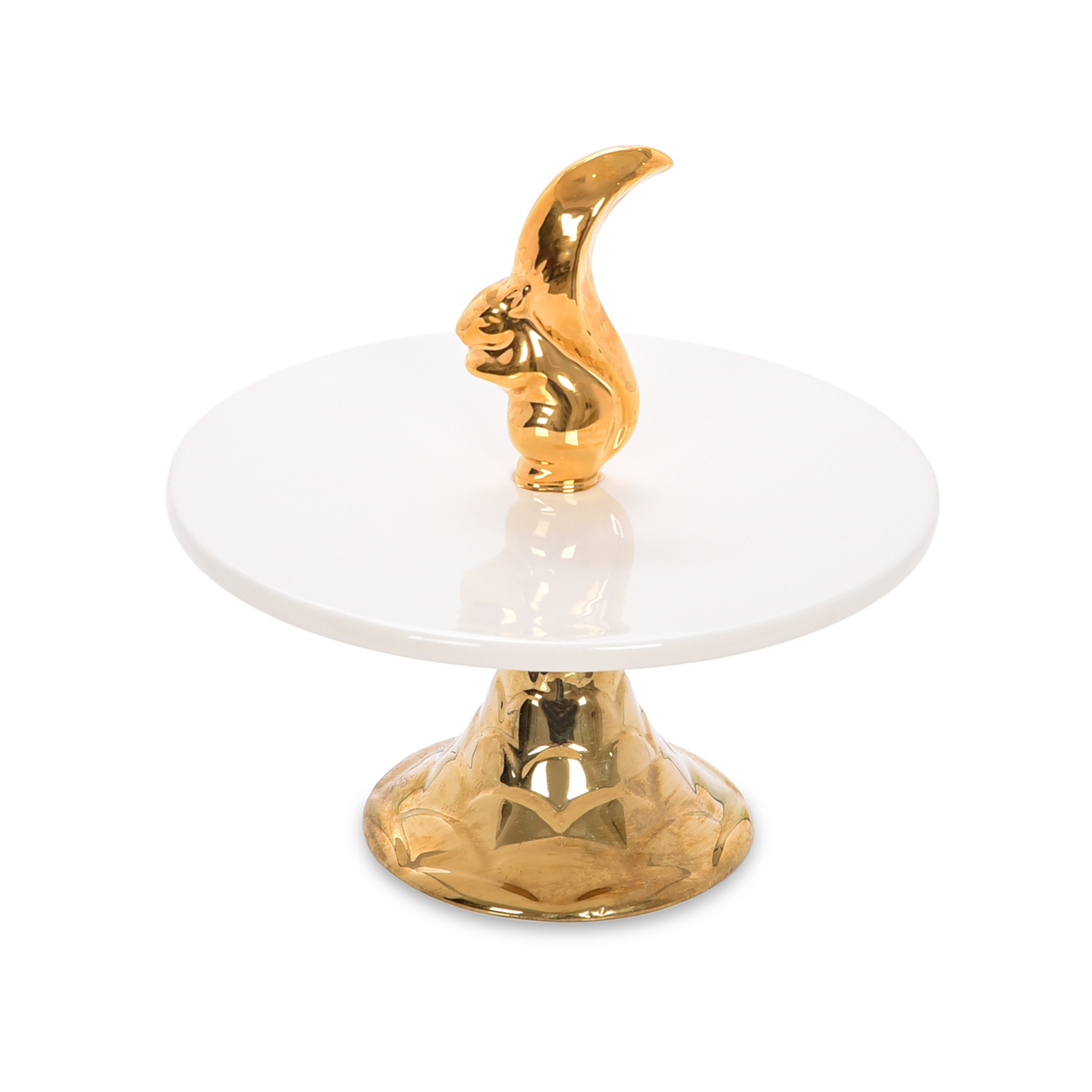المجسم الذهبي الأنيق في الأعلى سيجذب انتباه الضيوف إلى تشكيلة التقديم الخاصة بكِ بالتأكيد. يتميز طبق تقديم الحلويات من لا ميسا بوعاء دائري باللون الأبيض اللامع بالإضافة إلى قاعدة ذهبية بتصميم جذع نخل فريد.