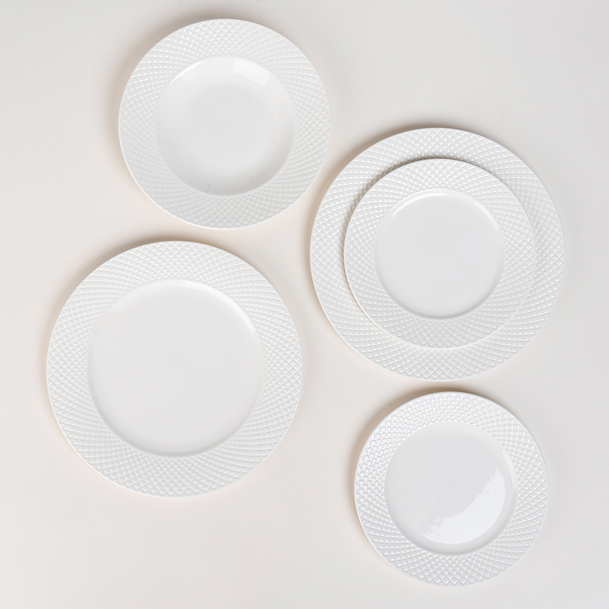 يعتبر الطقم الأبيض الكلاسيكي من لا ميسا إضافة مثالية لطاولة طعامك، وذلك بفضل النقش الناعم حول الحواف بتصميم كلاسيكي أنيق. يلائم الطقم 4 أشخاص ويتكون من 4 صحون طعام، 4 صحون عميقة و 4 صحون جانبية.