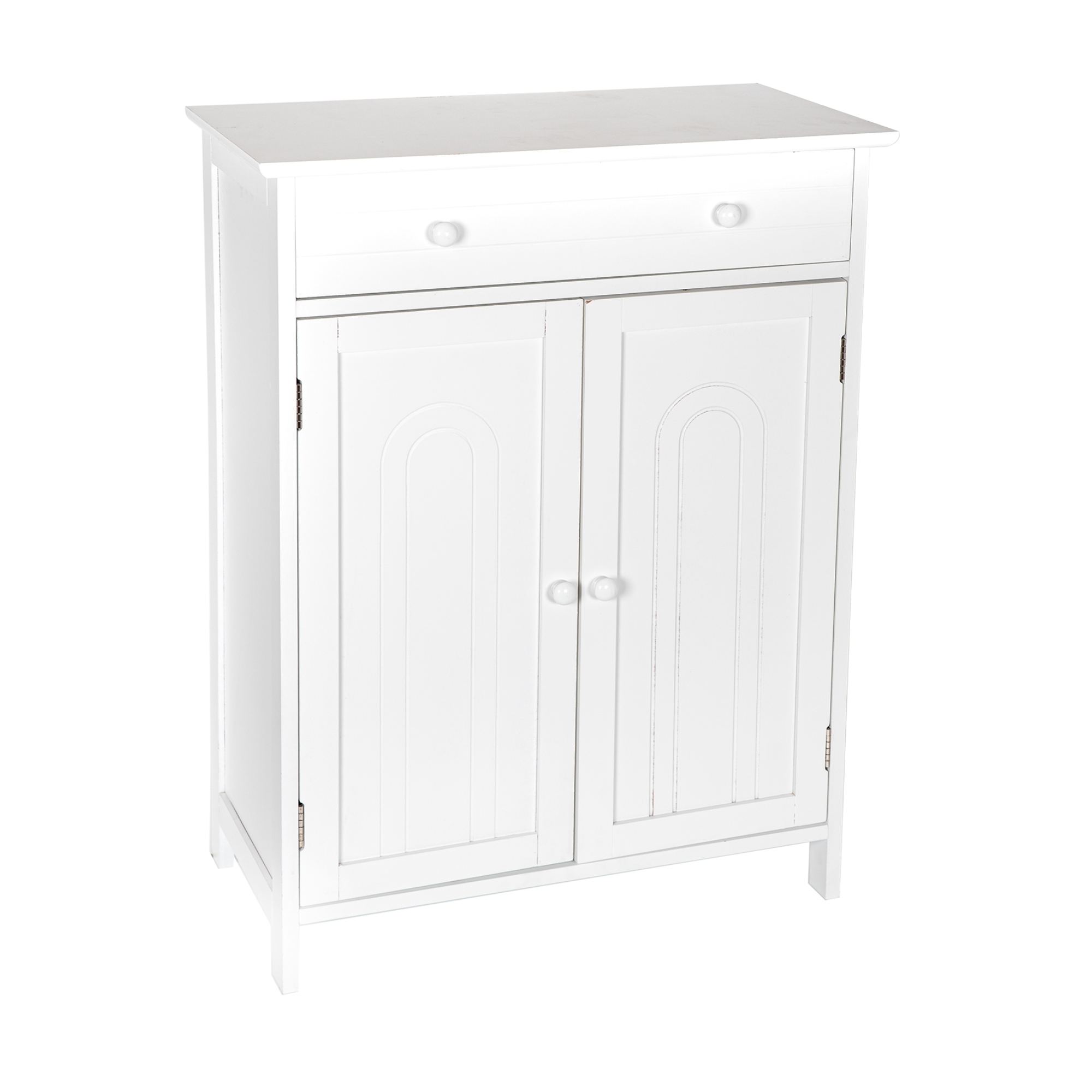 خزانة مغلقة مصممة ببابين وأربعة أدراج لضمان الحفاظ على متعلقاتك خالية من الغبار ويمنع السطح عالي الجودة وصول الماء والرطوبة إلى أدوات النظافة الخاصة بك. صنعت الخزانة من سطح متين مما يجعلها الاختيار الأمثل لحمامك، كما أن المقابض الدائرية مريحة ومناسبة للاستخدام اليومي.