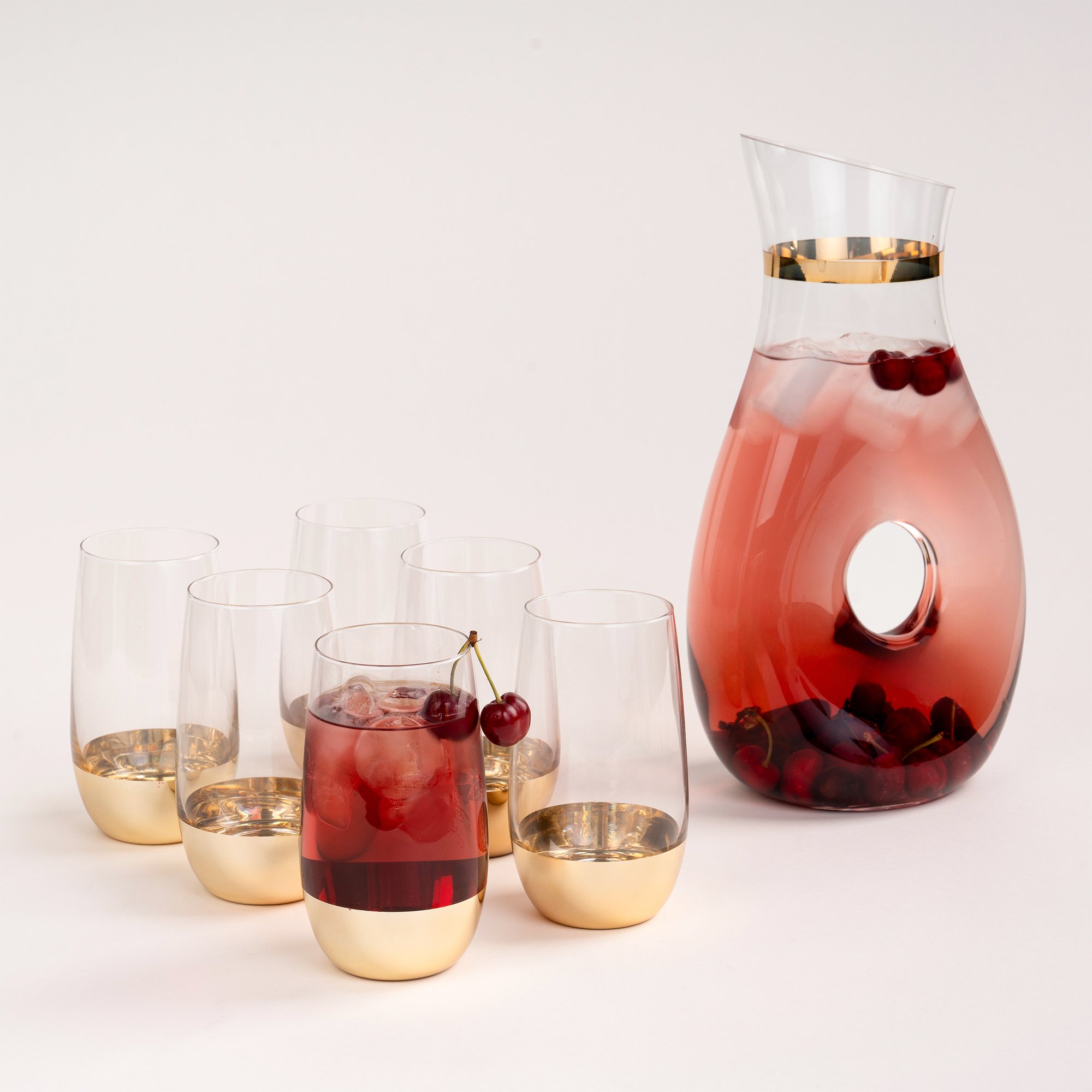 7 Pcs Glass Drink Set Tashkeel Pattern Gold