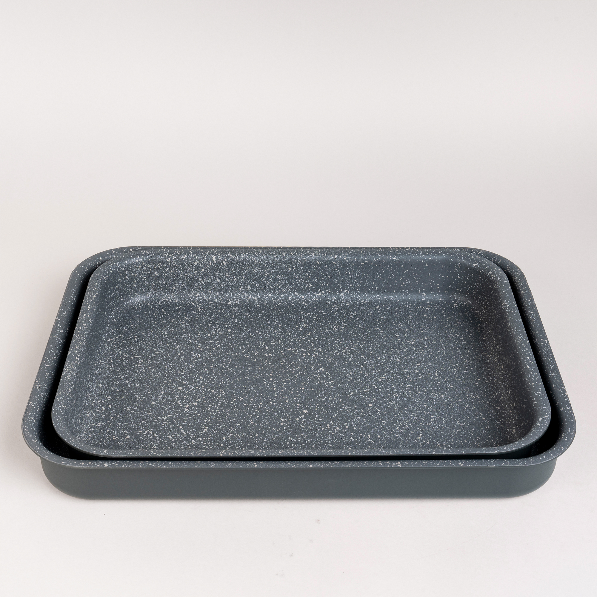 Alberto 2 Pieces Rectangle Forged Aluminum Roaster Set Dark Grey Color