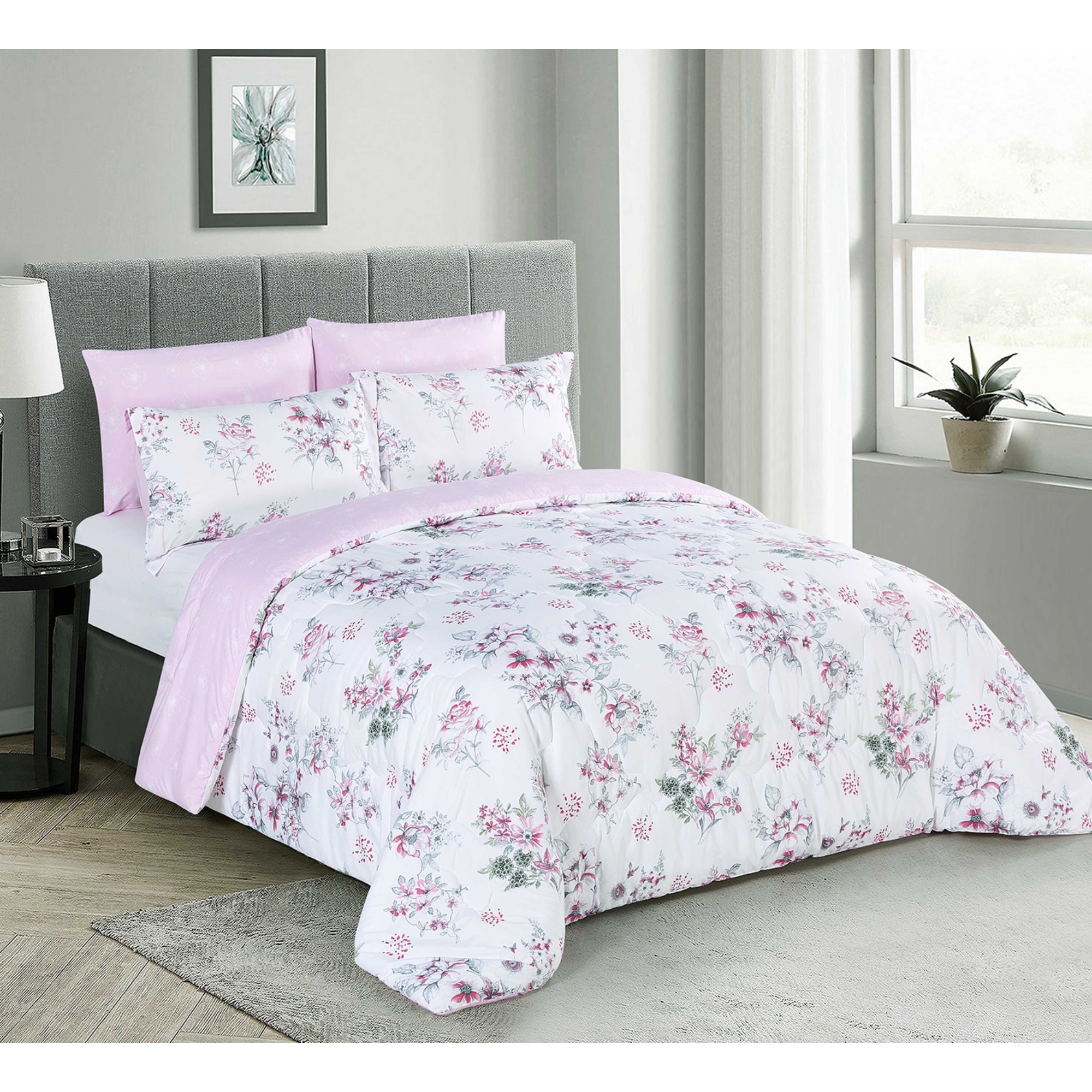 The floral prints in an elegant design and a soothing pink color will add lots of style to your bedroom. The comforter set from Cottage is made from high quality microfiber to ensure that you are surrounded by extra softness. The set consists of 6 pieces and is suitable for a king size bed.