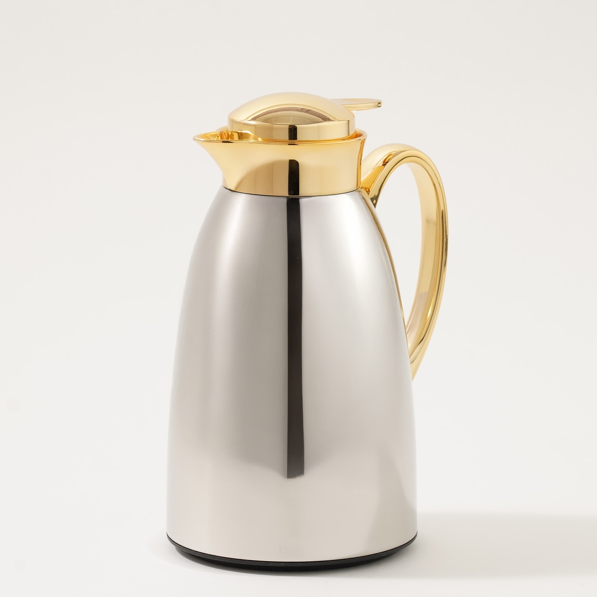 A sleek and modern 1L vacuum flask from Dallaty, featuring a full chrome plated body that exudes elegance. Designed for maintaining beverage temperatures for extended periods, this durable stainless steel flask is an excellent addition to any serving collection. Its ergonomic handle ensures a comfortable grip, making it a practical choice for both home and office use.