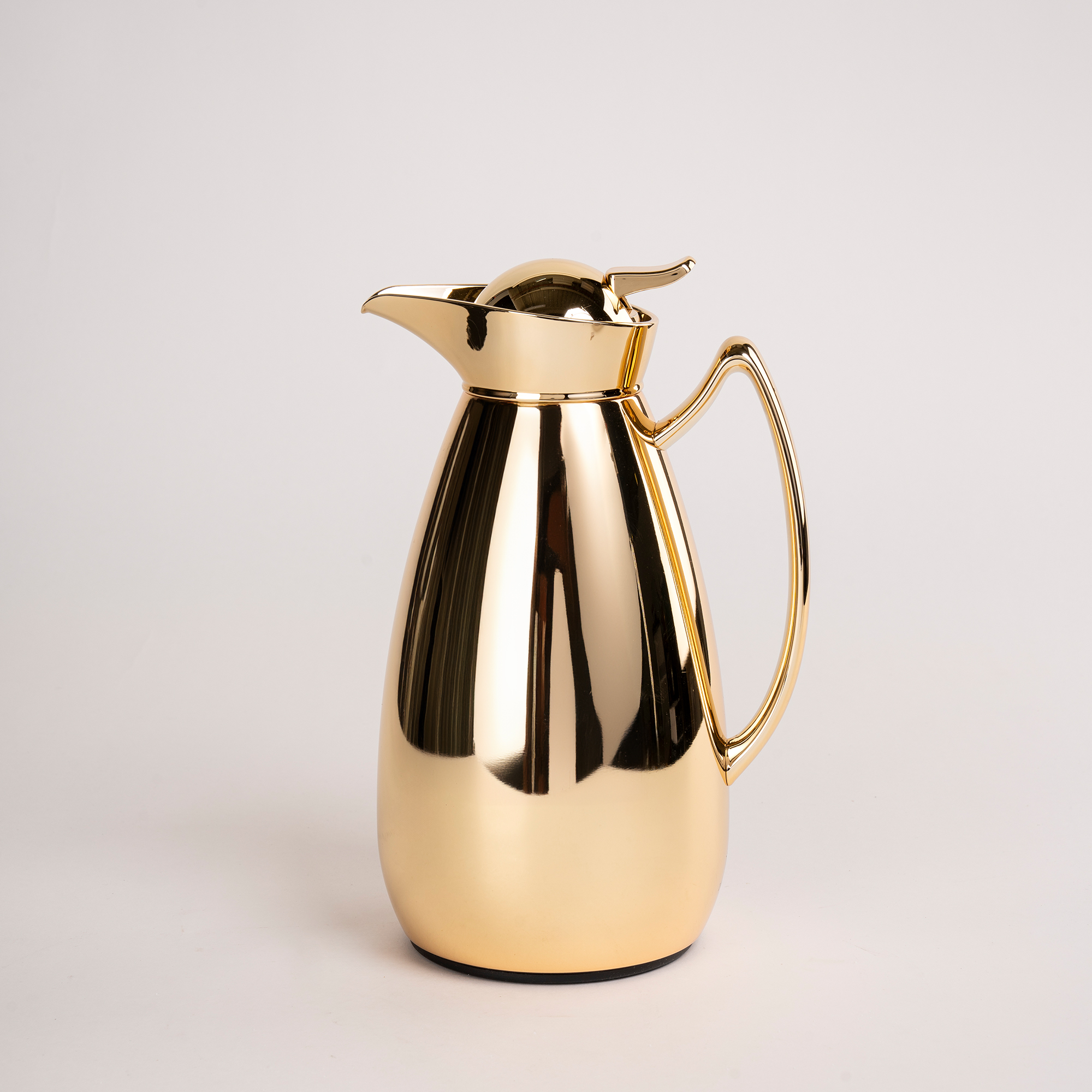 Enjoy your tea & coffee with Dallaty stainless steel vacuum flask in a stunning gold finish. Crafted from high quality steel. This 1 Liter flask offers exceptional functionality by preserving the temperature of both hot and cold drinks, keeping them hot or cold for extended periods. This flask is a must whether you're on an outdoor adventure, or everyday use.