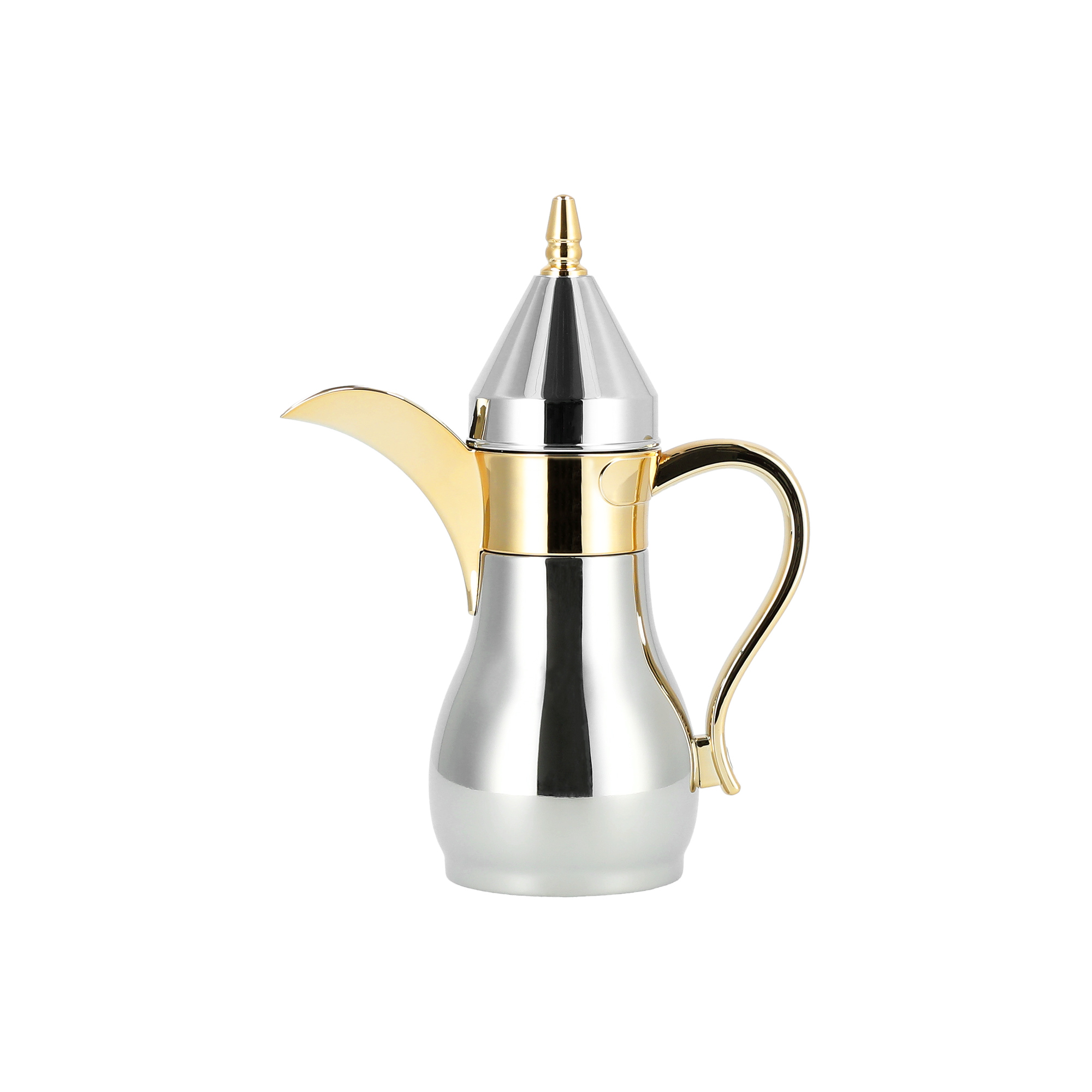Enjoy your tea & coffee with Dallaty mini stainless steel vacuum flask in a stunning chrome & gold finish. Crafted from high quality steel. This 300 مل flask offers exceptional functionality for both hot and cold drinks. Its sleek design with gold and chrome accents, makes it a standout accessory. This flask is a must whether you're on an outdoor adventure, or everyday use.