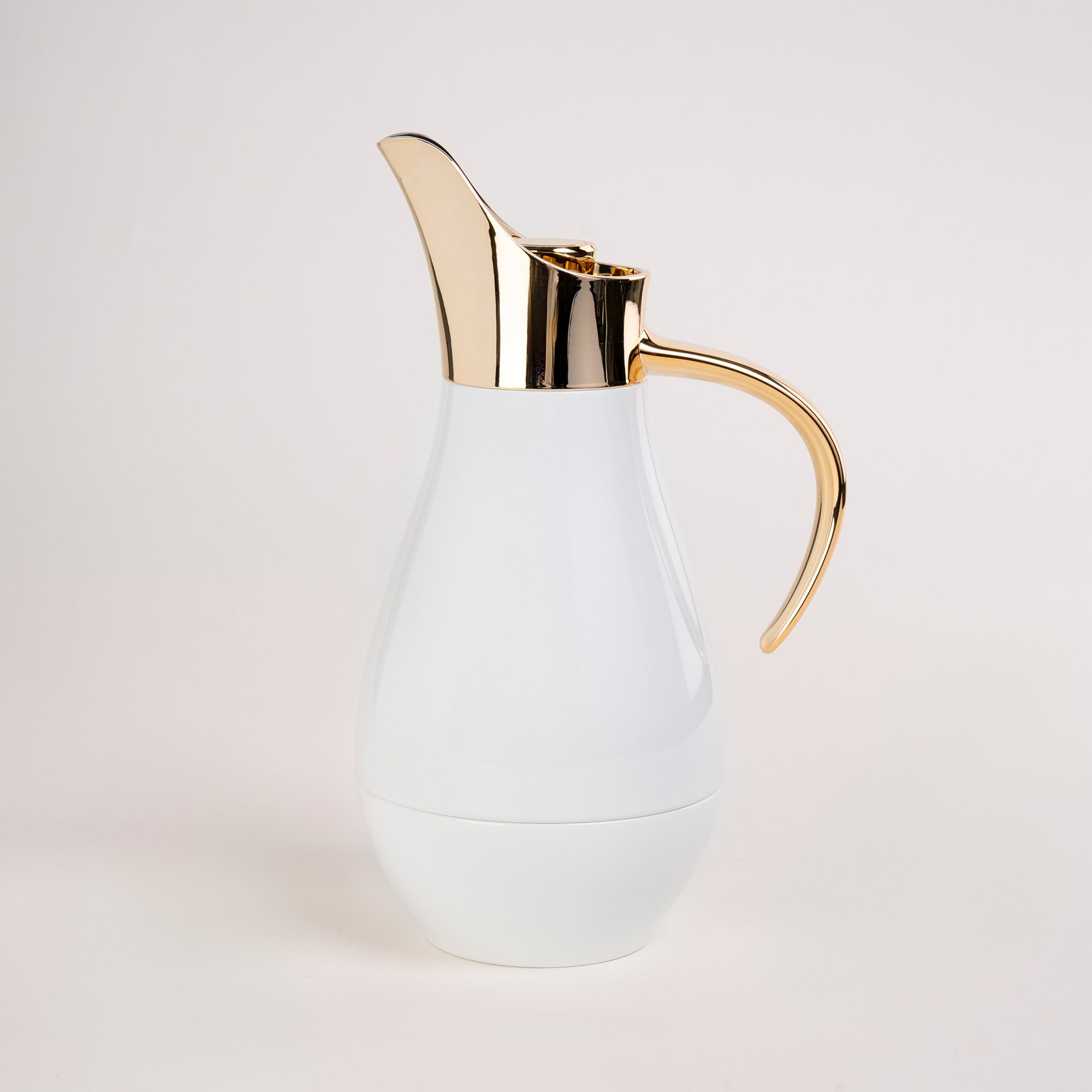 Enjoy your tea & coffee with Dallaty stainless steel vacuum flask in a stunning white & gold . Crafted from high quality steel. This 1 liter flask offers exceptional functionality for both hot and cold drinks. This flask is a must whether you're on an outdoor adventure, or everyday use.