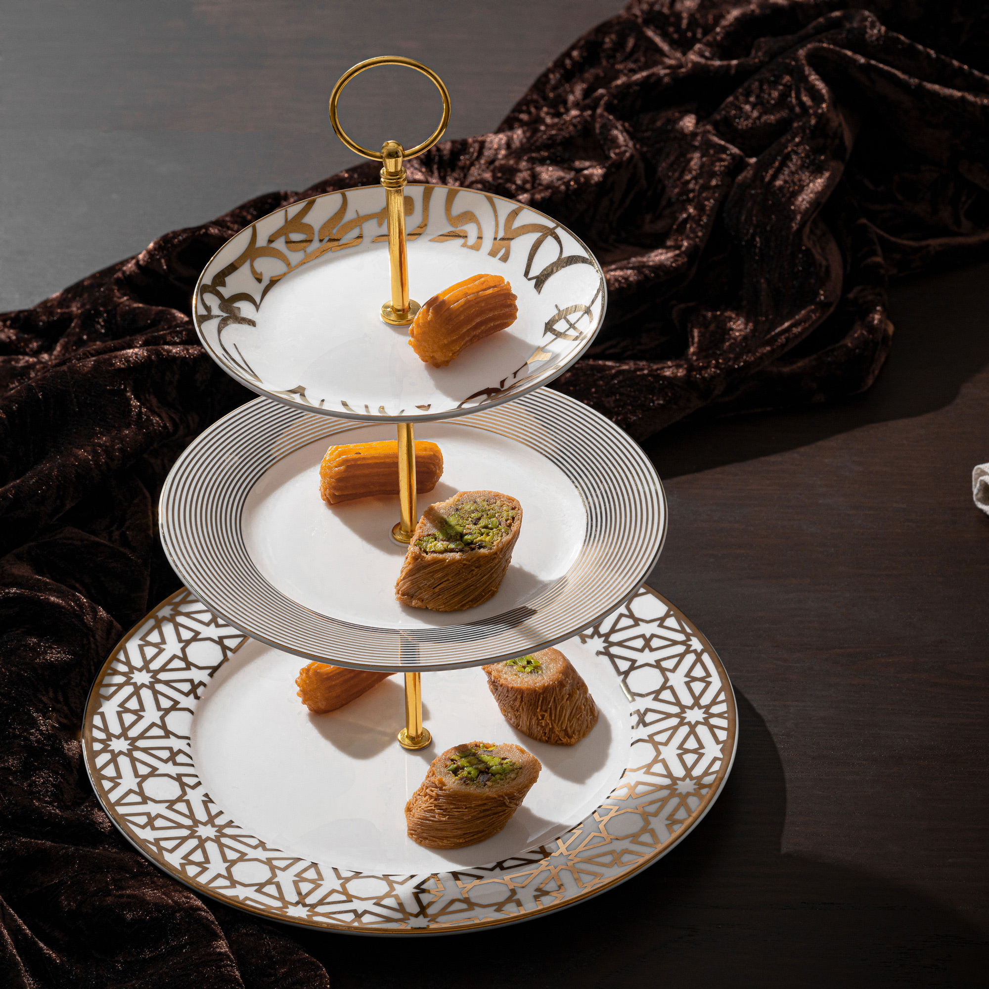 LA MESA 3 TIERS PORCELAIN DESSERT SERVING KAN YA MAKAN  GOLD