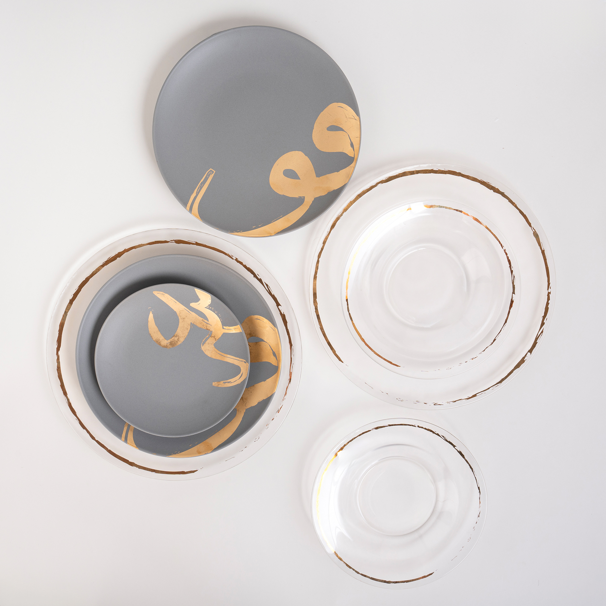 Set Includes 13" glass charger*4pcs10.5" matt cement couple plate *4pcs8.5" glass soup plate*4pcs8" side plate