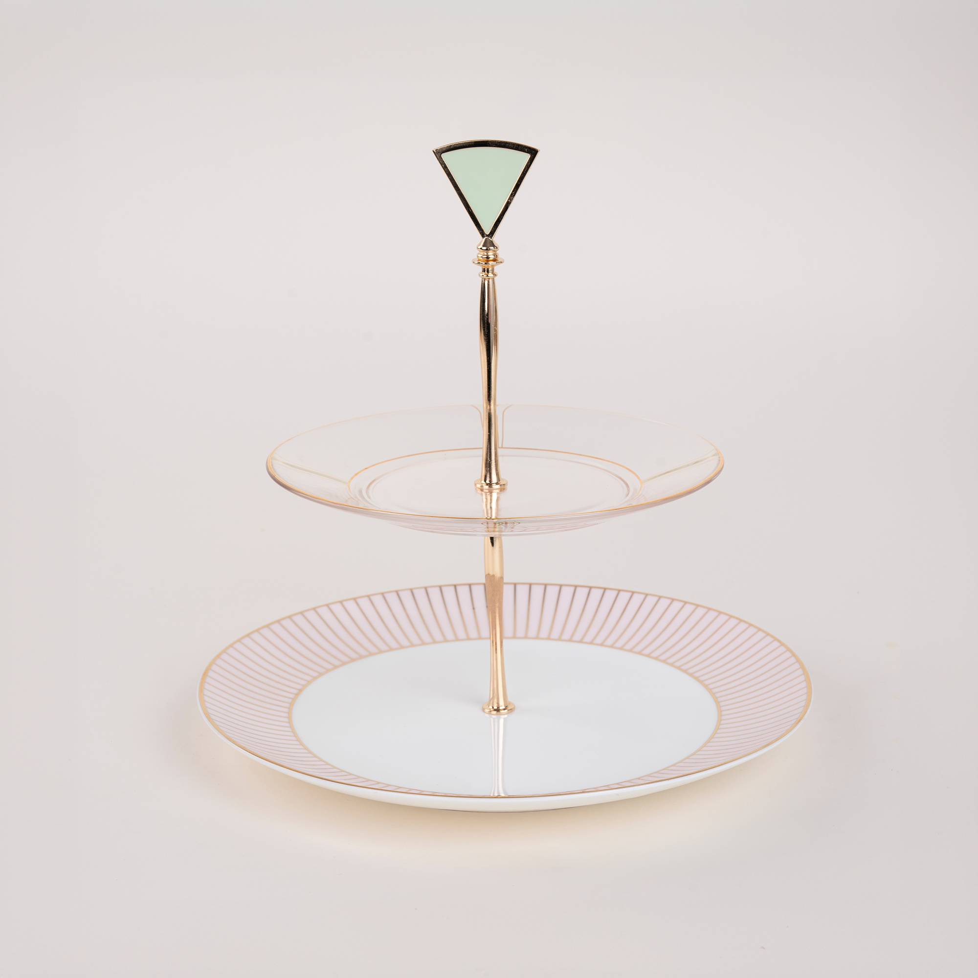 Introducing La Mesa pink porcelain cake stand, a captivating addition to your dessert presentation. This elegant 2 tier serving stand is crafted from high quality porcelain and glass, showcasing a timeless pink hue is a must have. The cake stand comes in a generous size, which provides space for displaying cakes, pastries, cupcakes, and more.
