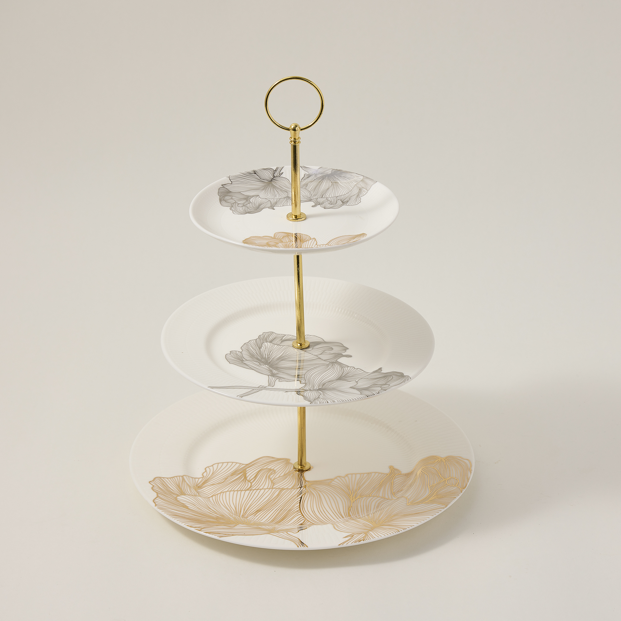 La Mesa Porcelain Cake Stand 3 Tiers Golden Garden
